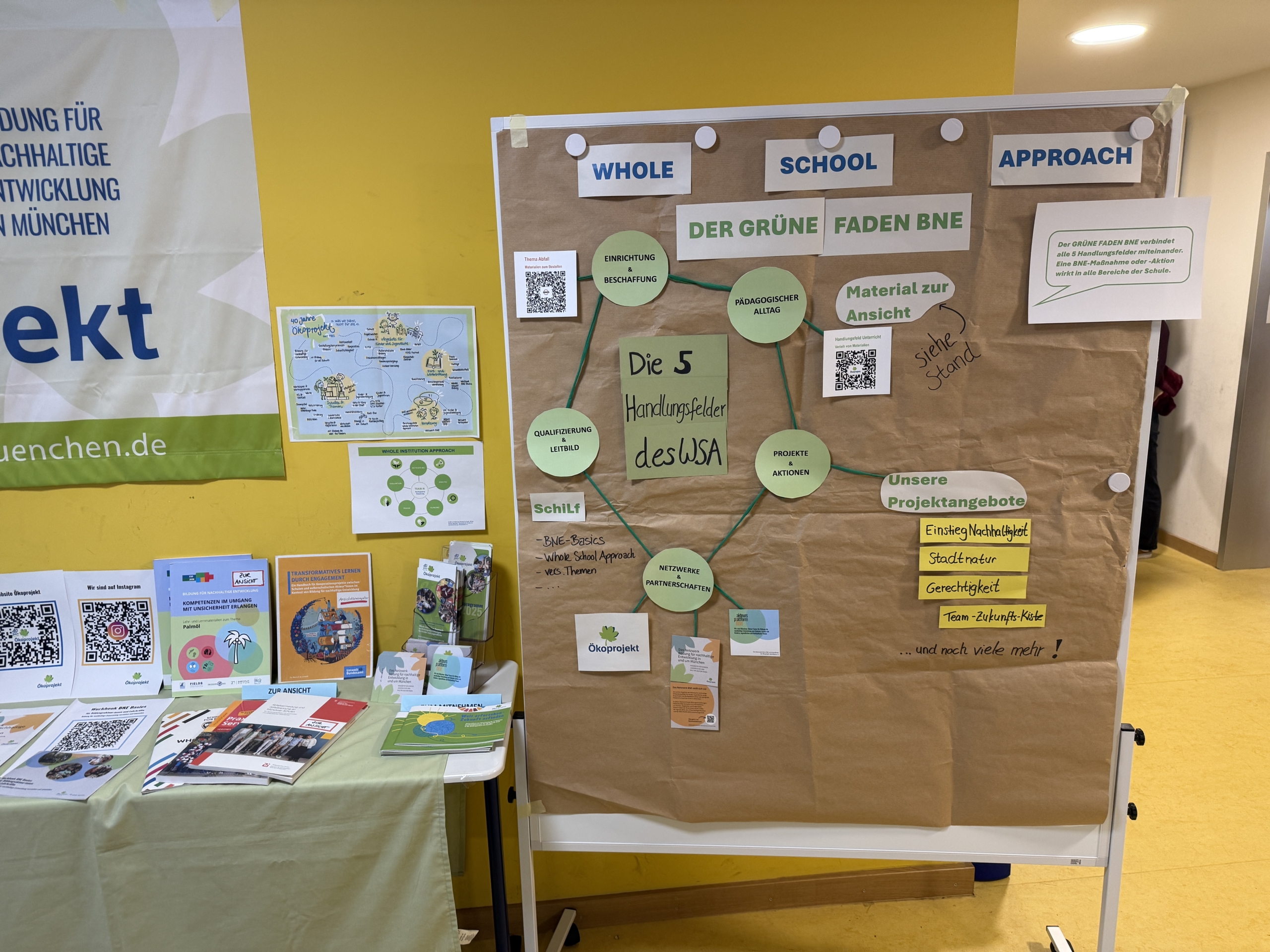 Auf dem „Marktplatz der Möglichkeiten“ herrschte reges Treiben. An zahlreichen Mitmach-Infoständen stellten Initiativen aus der Region ihre Projekte vor. Das Themenspektrum reichte von Zero Waste und Ökolandbau über Kinderrechte bis hin zu innovativen Konzepten für den „Unterricht im Wald“. Unsere Schülerinnen und Schüler konnten an einer Quiz-Rallye teilnehmen, bei einer Puzzle-Leinwand mitwirken und mit den Expertinnen und Experten ins Gespräch kommen.