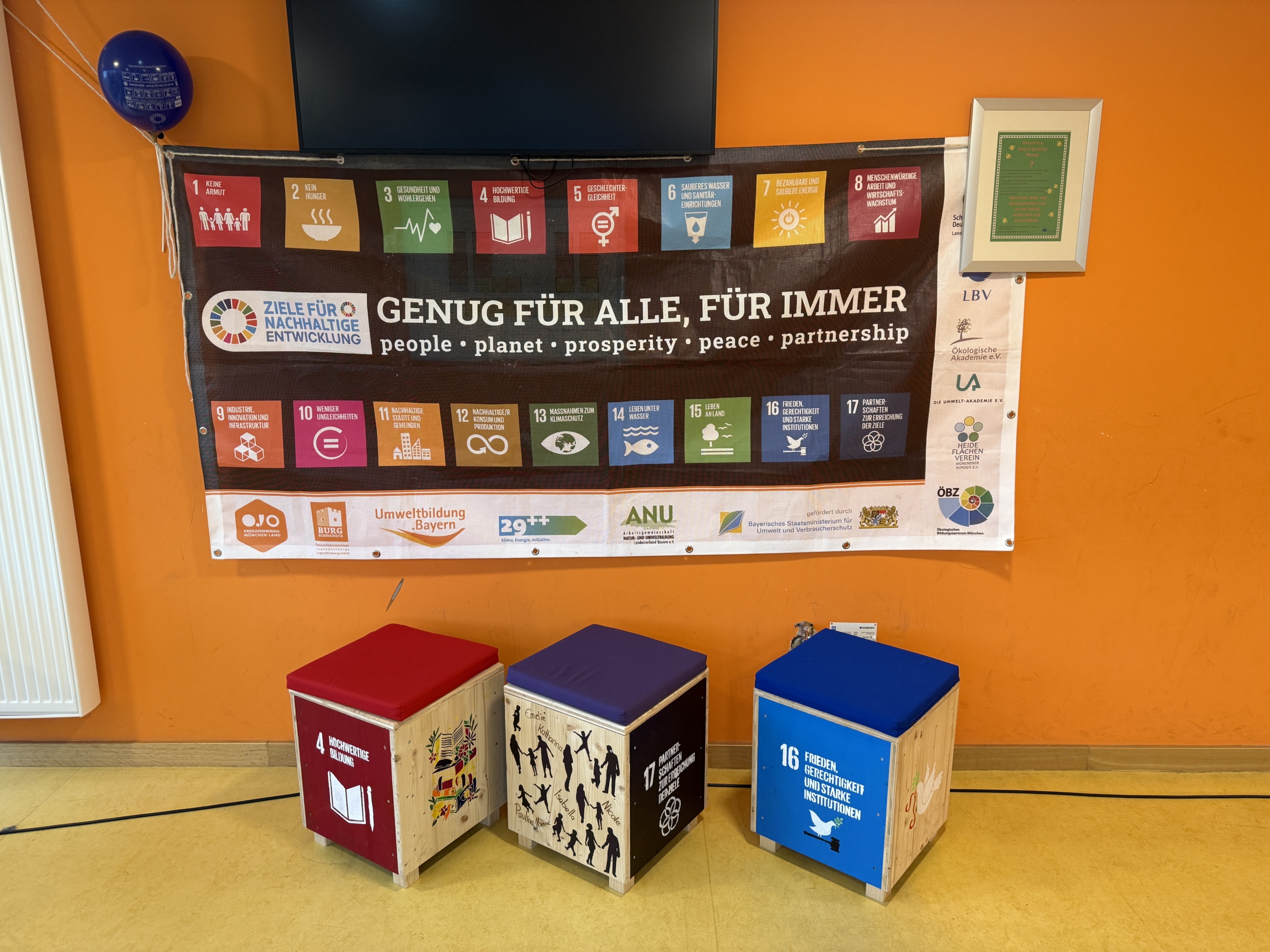Neben den Infoständen boten vertiefende Workshops die Möglichkeit, selbst aktiv zu werden. Ob beim Knacken von Codes im Klima-Escape-Room, beim philosophischen Austausch über die Frage „Wie wollen wir leben?“ oder bei der kreativen Gestaltung von Türen zu den 17 Nachhaltigkeitszielen der UN – das Angebot war vielfältig und fesselnd.