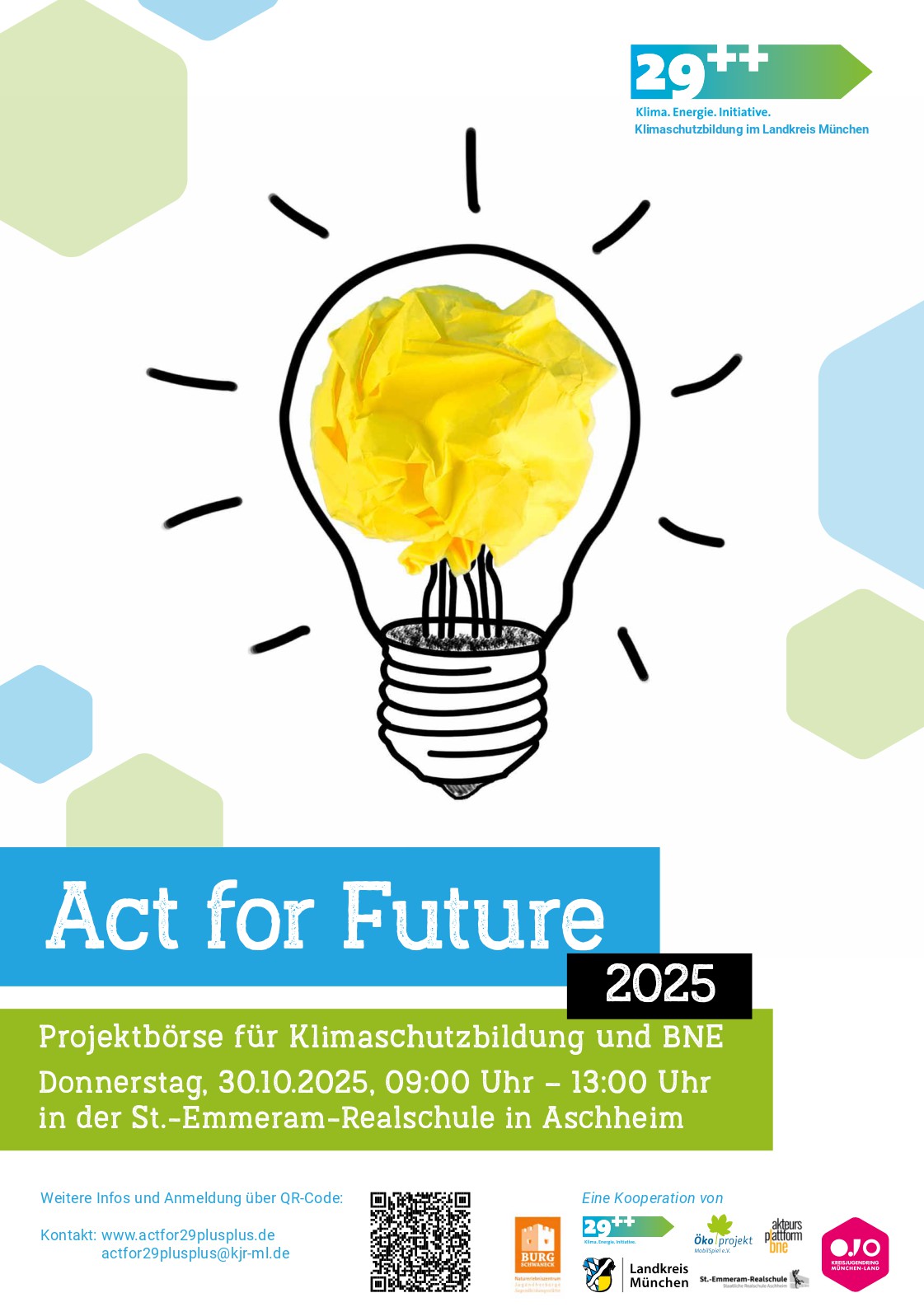 Am Donnerstag, 30.10.2025, verwandelte sich unsere St.-Emmeram-Realschule in einen Marktplatz der Zukunfts-Ideen. Bei der Projektbörse „Act for Future“ drehte sich alles um die Themen Klimaschutzbildung, Nachhaltigkeit und Bildung für nachhaltige Entwicklung (BNE). Mehrere hundert Schülerinnen und Schüler nutzten die Gelegenheit, um sich zu informieren, auszutauschen und vor allem selbst aktiv zu werden.